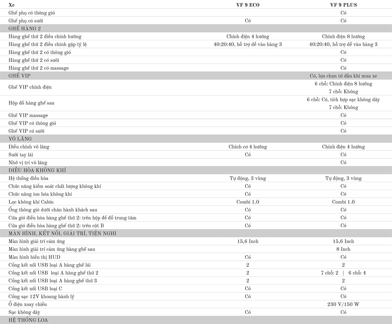 Tổng thể, nội thất VinFast VF 9 mang đến không gian sống đẳng cấp, tiện nghi và công nghệ hiện đại, phù hợp cho cả gia đình đông người lẫn khách hàng doanh nhân, đáp ứng mọi nhu cầu sử dụng trên những hành trình dài.